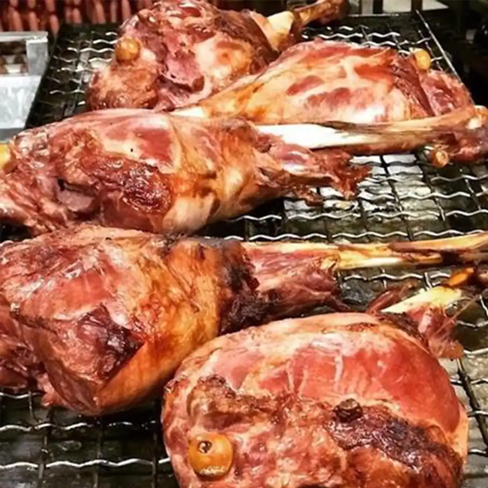 Det rökta lammlåret varmröks på en bädd av alspån.